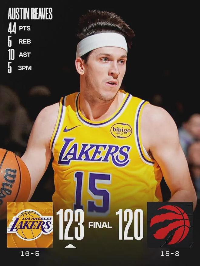 • 123-120!里夫斯44+11,詹姆斯连续上双纪录终结,湖人绝杀猛龙